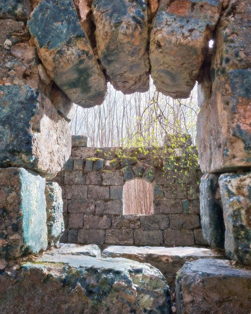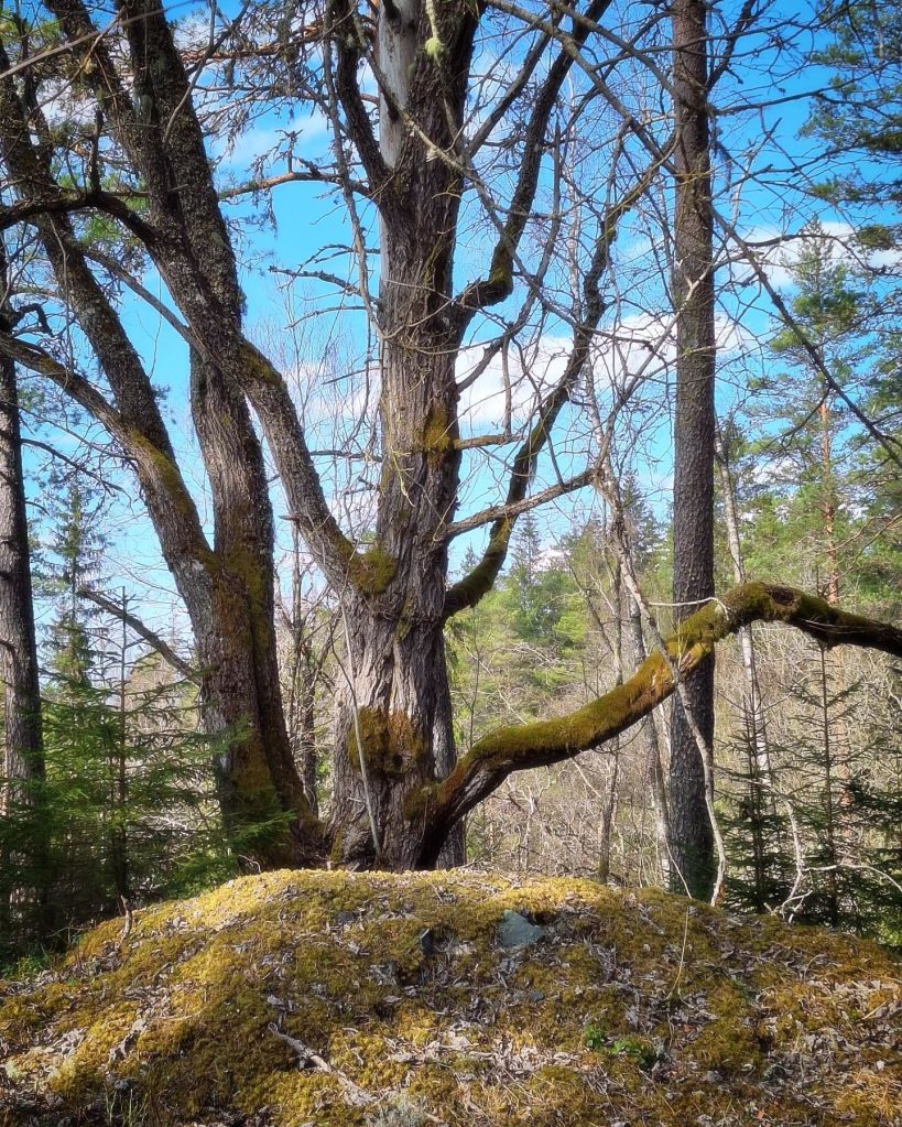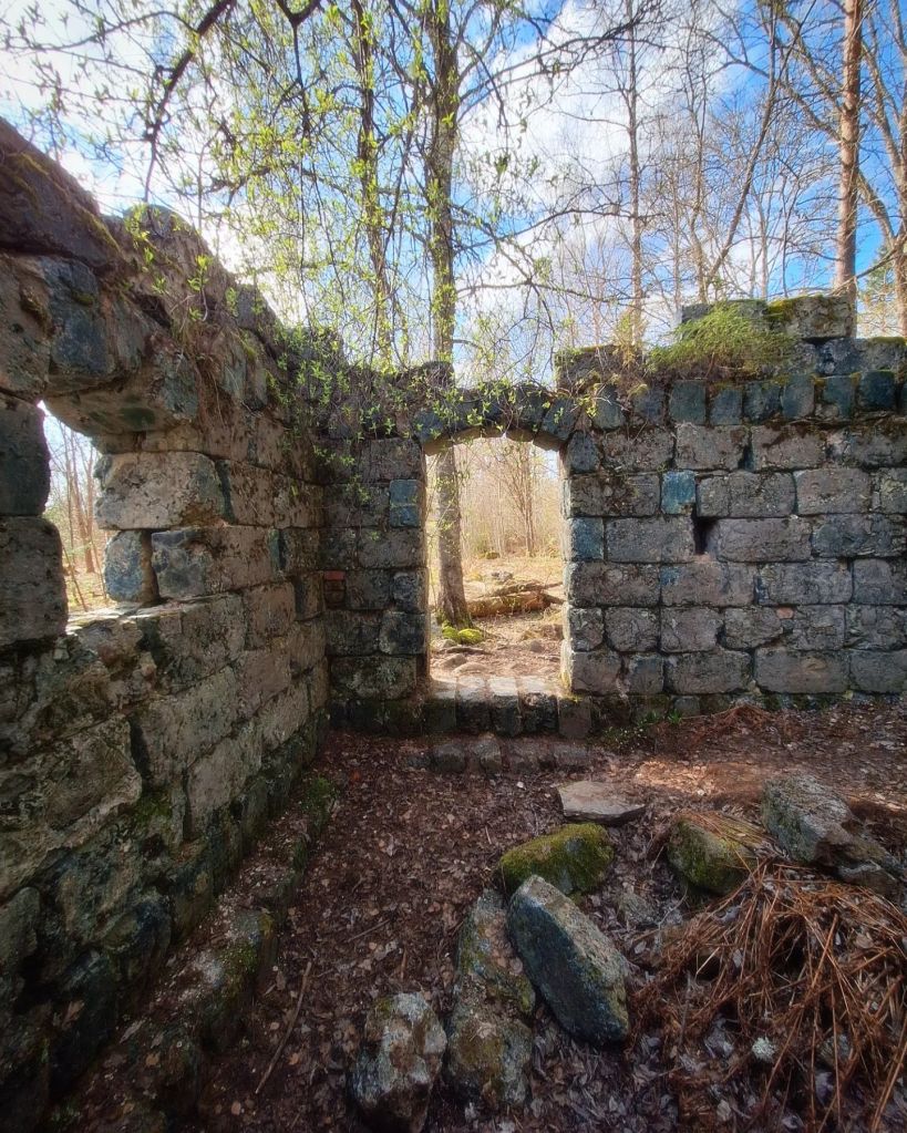 Slaggstenshusruinen och ett av träden nära Yngshyttegruvan.