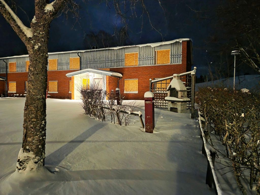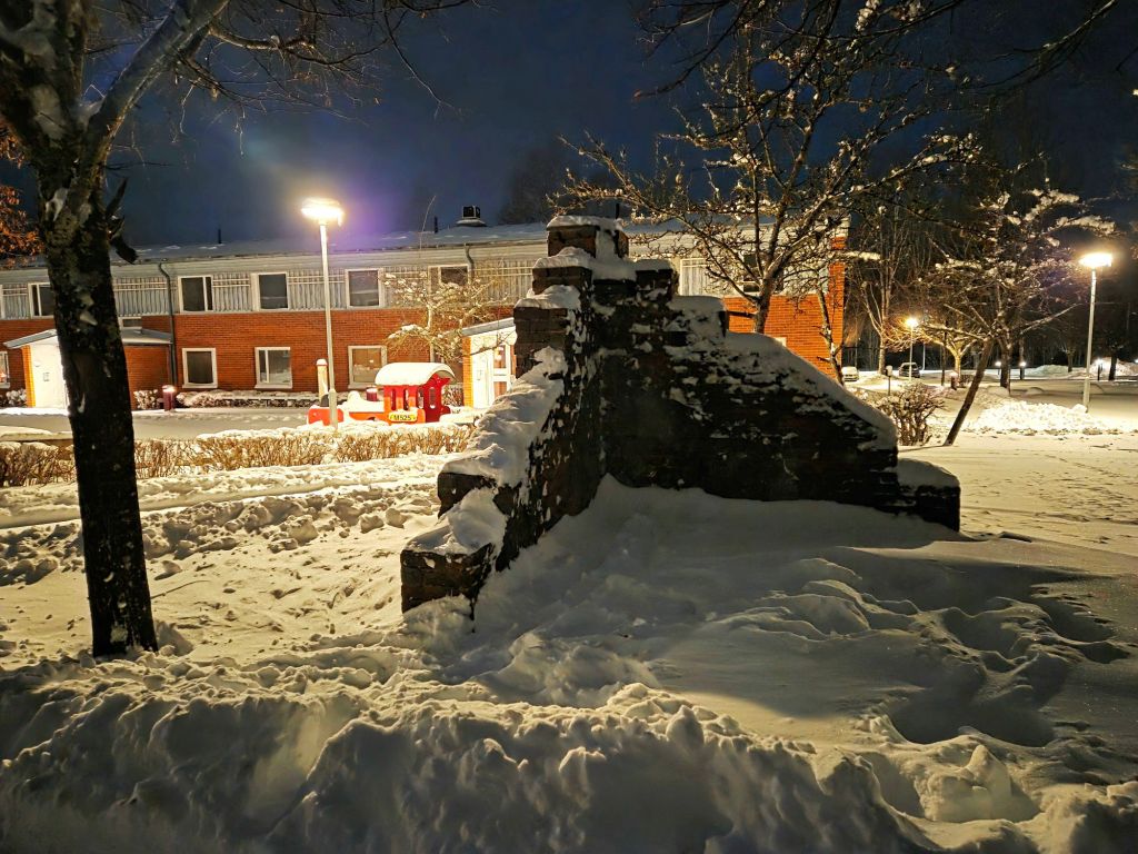 Då jag blivit lite besatt av det här med kvarteret Polstjärnan, som jag skrev om igår, så går jag dit igen. Nu, i mörkret och snöyran, känns det ännu sorgligare med alla de tomma, mörka fönstren och de igensatta, plywoodskivförsedda.