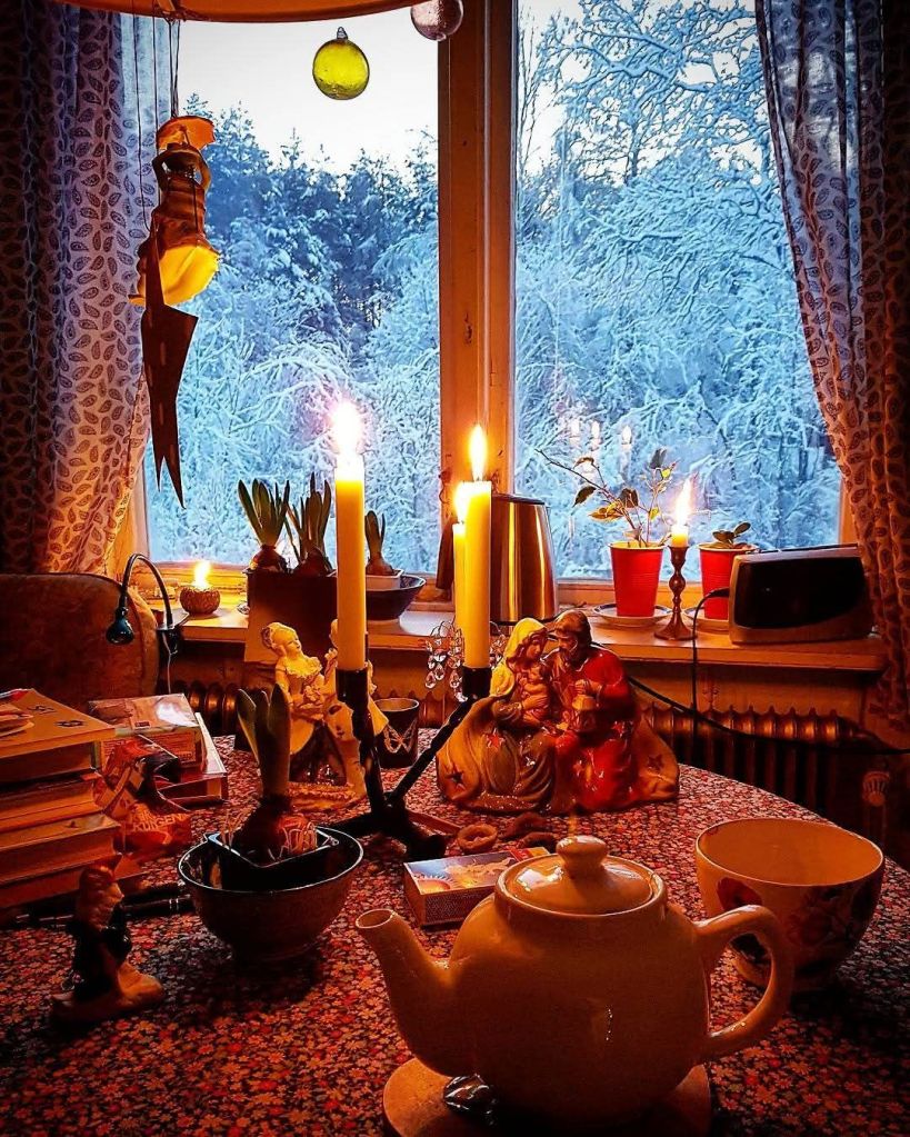 Här i norr är decembermörkret en utmärkt tid att vända sig inåt, söka det inre ljuset, och reflektera över hur vi handskas med livet och det levande. Tyvärr lever vi i ett samhälle och en tid som inte på något enda vis vill ta hänsyn till de naturliga cyklerna och växlingarna. Det är något vi behöver ändra på, tycker jag. Att leva ”nära naturen” betyder inte nödvändigtvis att vi bosätter oss mitt i den sinande och av ekonomisk vanvettsordning hotade skogen, det betyder att vi lever nära det vi i grund och botten är, vår grundläggande natur, som är del och beroende av, samspelande med, all annan natur. Helheten. Heligheten. Nära ursprungliga behov som närhet, omsorg, beroende av varandra, tid för vila och reflektion, och nära den kunskap och visdom som finns inom oss.