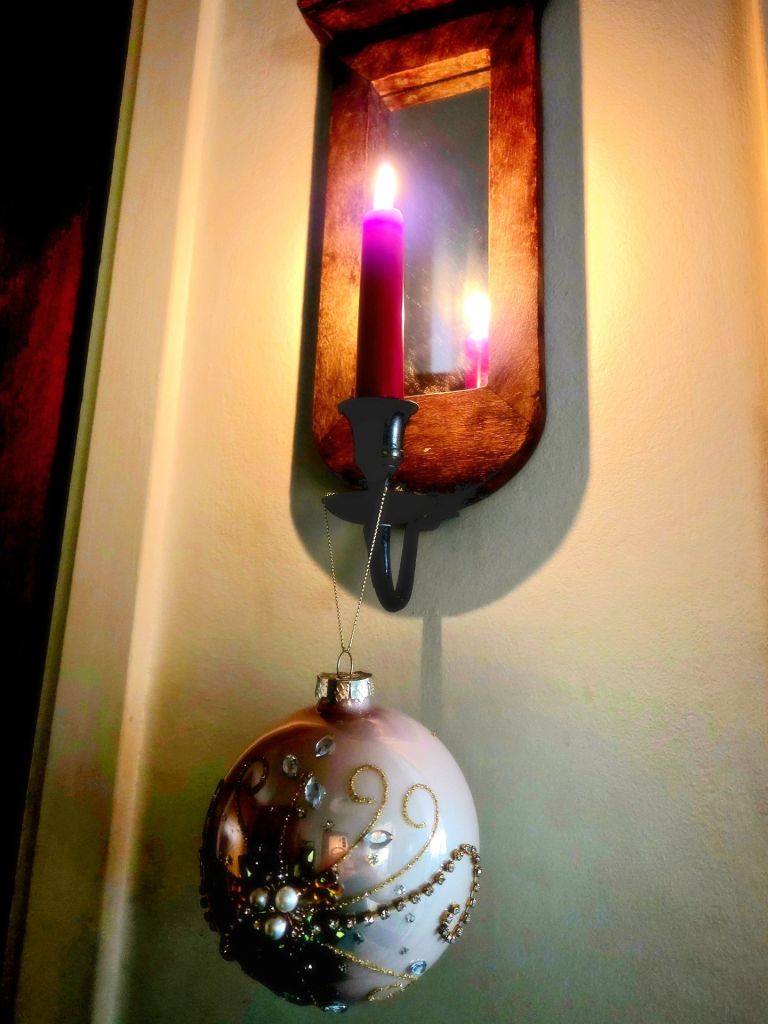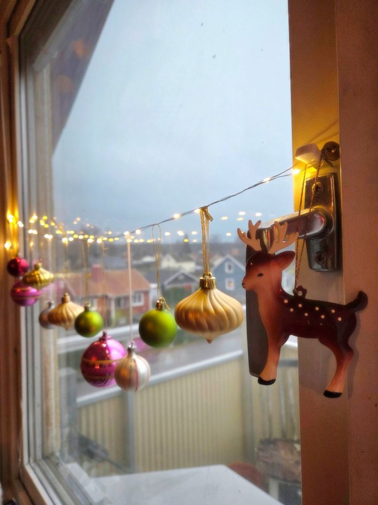 Tanken var att lägga upp en liten serie med från-ljust-till-mörkt-bilder i förra inlägget, men det funkade av okänd anledning inte. Här är iallafall ytterligare ett par pyntbilder, bara för att det är så underbart med små glittrande saker.