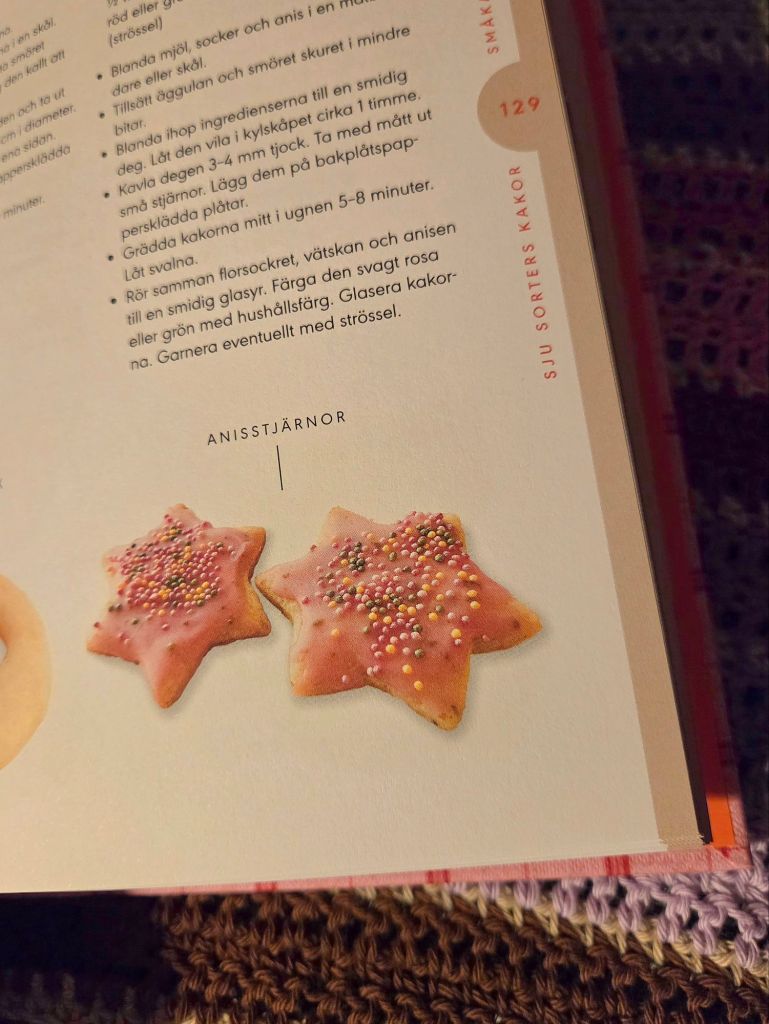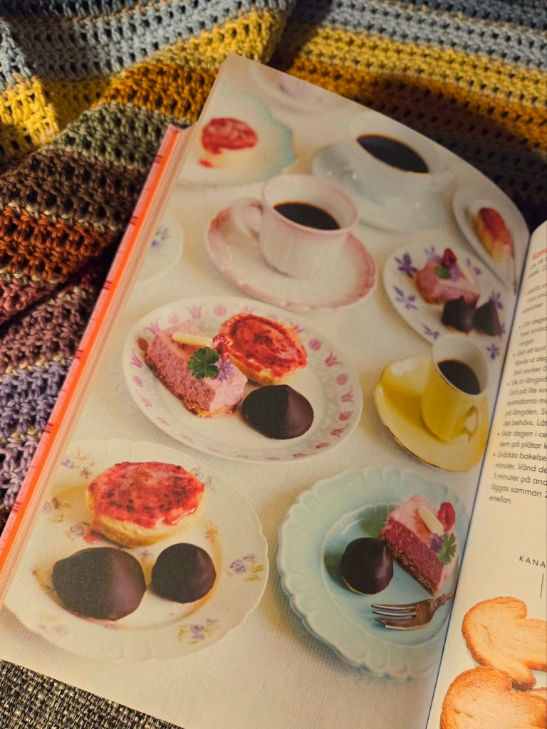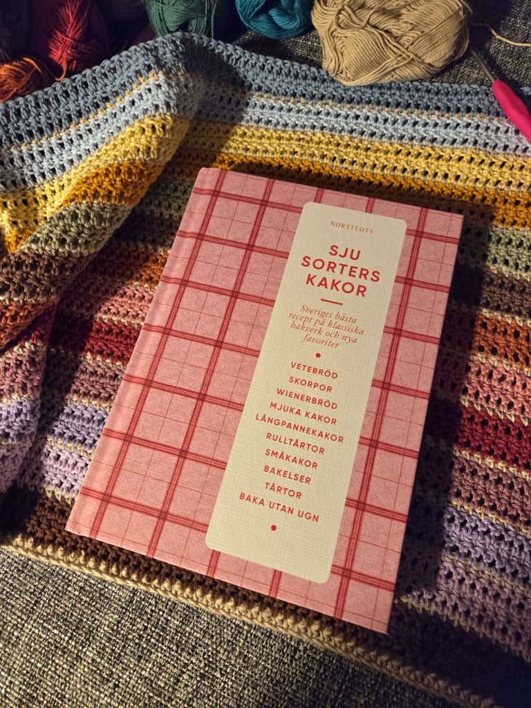I den senaste utgåvan av Sju sorters kakor (från 2021) ser allting gott ut, tänker jag när jag bläddrar i den klockan sex på morgonen, i väntan på att det ska bli dags att gå till bussen för att åka till Örebro och träffa den där psykologen, Insha’Allah. Jag är mycket nervös, så försöker lugna ner mig genom att titta på bakverk i uppdateringen av min mammas (och tusentals andra mammors, I guess) kakboksklassiker. Röd-vit-rutmönstret på framsidan är borta, ja, bilden på de sju sorterna med, men boken känns ganska trösterik ändå. Den kom i ett bokpaket nu på morgonen. Lägligt.