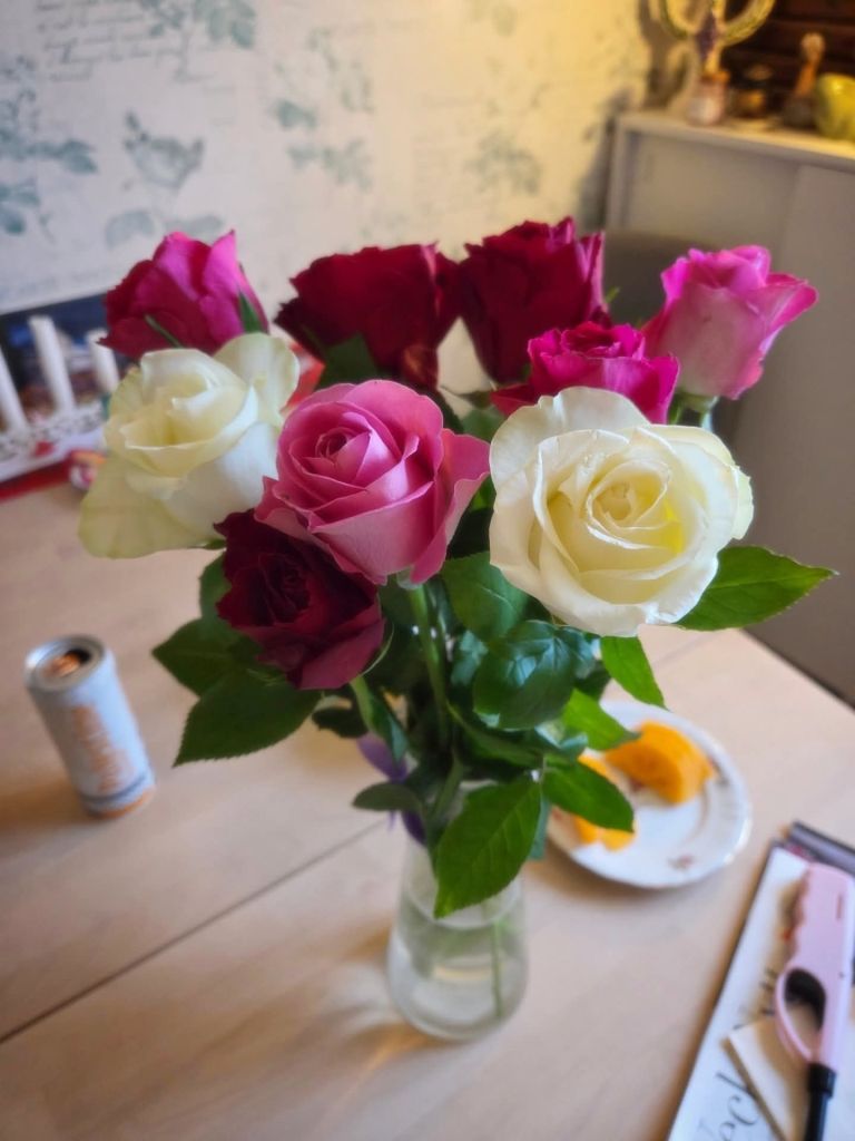 PS. Fairtraderosorna hittade jag på ICA. Överlämnade dem med ett Grattis på befrielsedagen! Jag lyssnar och försöker förstå, närma mig känslan genom M, genom hans känsla, hans lättnad, hans ord och rörelser. Friheten har sitt eget språk, sina egna uttryck och gester. Sina andetag och sin av skimrande hopp genomlysta ömhet.